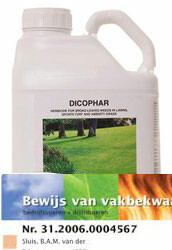 Bestrijding op jonge grasvegetaties wordt afgeraden vanwege de scherpe werking van Dicophar SL !