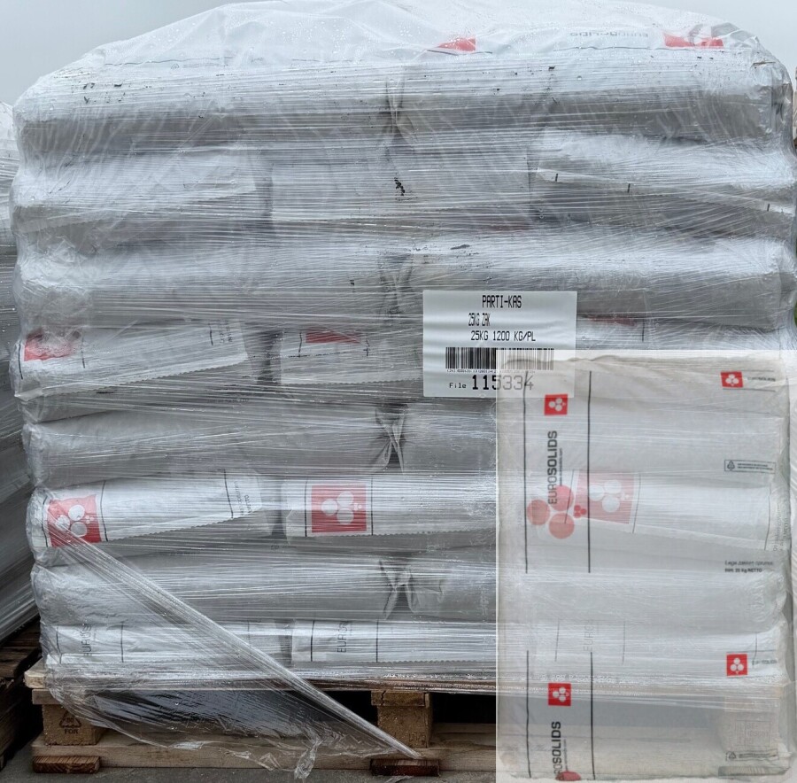 - Per pallet 48 zak a 25 kg = 1200 kg.